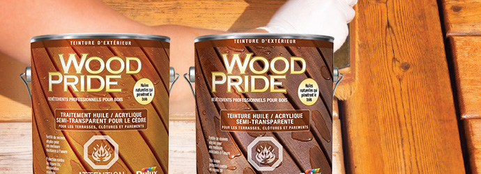 Les teintures semi-transparentes laissent transparaître la texture et la couleur du grain du bois pour en souligner la beauté naturelle, tout en assurant une protection nécessaire contre la rudesse du climat canadien.